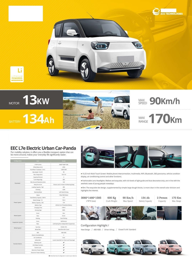 100 km/h PONY Mini EV 2|4-sæder, 22" skærm, 220km, 360º kamera, aircon, 5-års 60.000 km batteri & motor EU-garanti