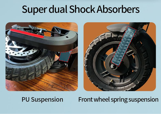 Foldbar 25 kg offroad 45 km/t 600-1100W affjedret el-løbehjul med 15Ah Lithium Iron batteri giver op til 50-70 km kørsel.