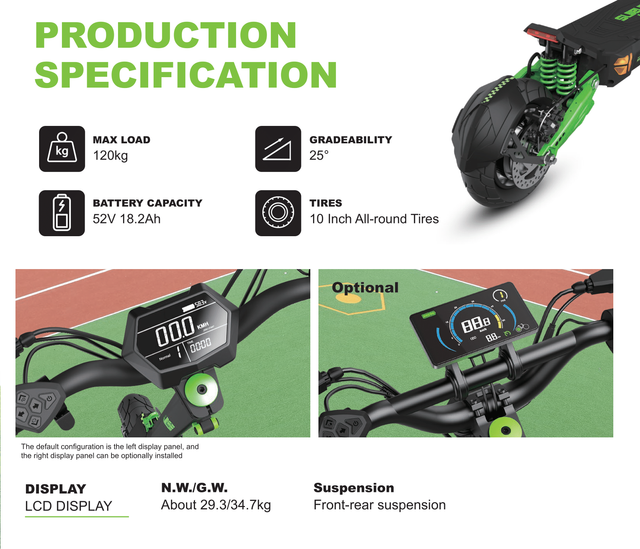 • Battery Capacity: 18.2Ah/23Ah 52V