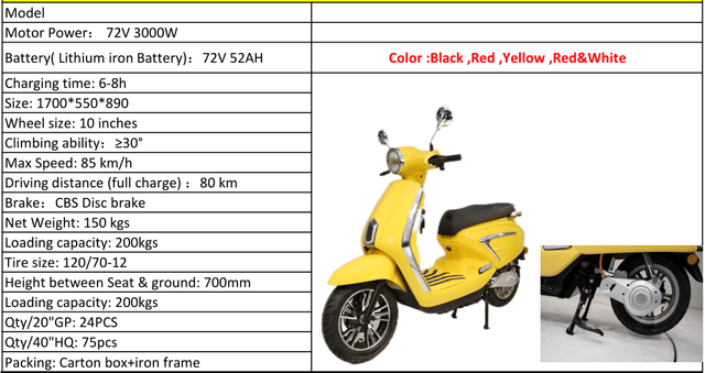 • Motor Power: 72V 3000W
